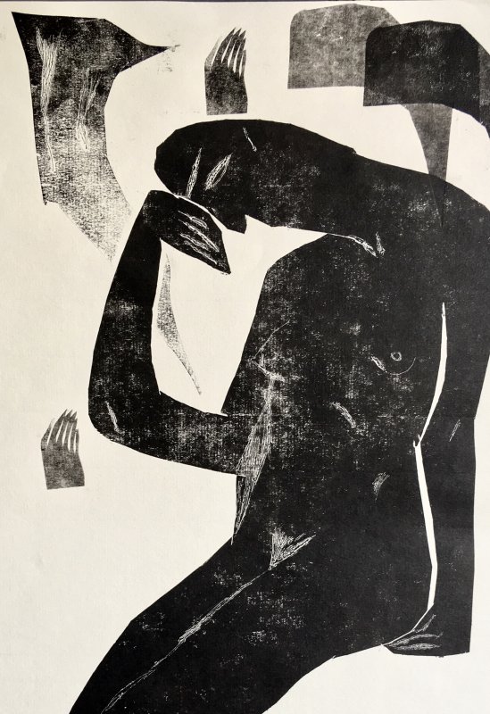 Sitting woman, 2019, typography ink on paper, 21cm x 42cm